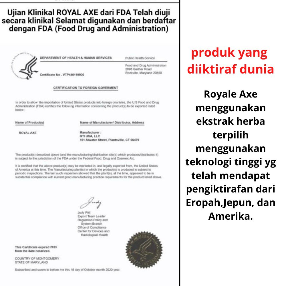 MEDIMAX formulasi hanya bahan premium dan approved by KKM. Kami telah R&D berkali-kali sehingga menjadi viral hasil positif dari ROYALE AXE ni.